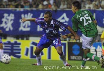 北京國安首發隊員:門將:姚健;後衛:徐雲龍、巴辛、李明、韓旭、陶偉;前衛:路姜、普雷迪奇、李東波、邵佳一;前鋒:王濤(記者:劉馳 攝影:馬宬)