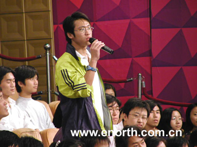 北方網消息:2003年9月26日下午,天津康師傅足球隊主教練馬特拉奇、體能教練范東尼與隊員於根偉、劉雲飛、曹陽、盧彥、馬拉、托夫丁來到天津電視臺參加了一個球迷見面、訪談活動。現場的觀眾、球迷紛紛提問,積極參與到活動中。(圖文:記者白月習)