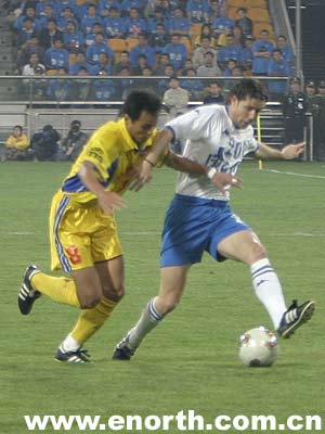 天津泰達隊首發陣容:劉雲飛;曲東,於光,王霄;王軍,盧欣,孫建軍,何塞,遲嶸亮;于根偉,杜爾桑