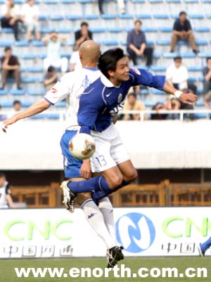 扳回一球的上海國際隊此後士氣更高,繼續發動攻勢。在下半時27分鐘,上海國際隊右側起球,國際隊外援阿爾西諾球門左側搶點成功頂到皮球,球在地方反彈後,從劉雲飛的身後彈入天津隊的網窩,上海隊頑強的將比分追平。比賽快結束時,天津隊很多隊員都明顯出現了體能問題。此後的比賽中,雙方都沒有再次把握住場上的機會,天津隊最終在領先兩球的大好形式下被上海國際隊以2-2逼平,仍然未獲得中超的首場勝利。