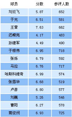 本輪爲泰達球員打分中:得分最高爲王霄(7.63分,662人蔘與投票),得分最低爲遲嶸亮(4.17分,483人蔘與投票)。