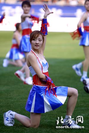 天津康師傅5-1狂掃遼足 足球寶貝熱舞表演(圖)