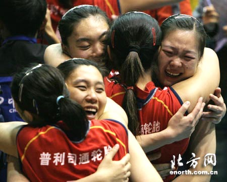 為了這枚金牌,天津女排早早就投入到殘酷的魔鬼訓練中。在天津薊縣訓練基地,女排姑娘們一天幾練,真的都累趴下了。但她們為了這個夢想始終堅持,堅持,再堅持。她們每個人都有傷病,但是每個人都輕傷不下火線,那個苦勁兒是一般人難以想象的,有時她們累得趴在地上真的都不想起來了,幾個人抱成一團痛哭,但是哭後就又互相鼓勵著,因為她們有夢想,有目標,即使是犧牲生命也在所不惜。在訓練基地,女排姑娘們說過一句感人至深的話??只要我們能夠互相攙扶著進入南京,那我們就是冠軍!
