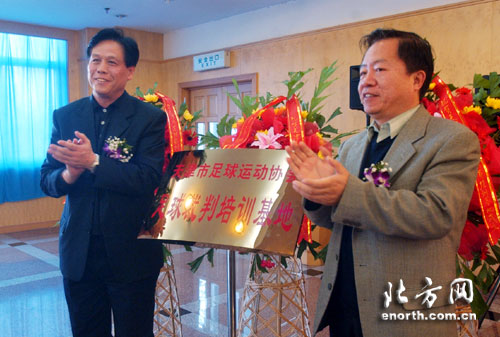 北方網消息(記者劉欣):12月15日下午,天津市足球裁判員培訓基地揭牌儀式在天津師范大學舉行。該培訓基地由天津市足球協會和天津師范大學共建,將面向天津市及周邊地區熱愛足球裁判工作的人員,以直接提昇足球裁判員能力水平,加強優秀足球裁判員隊伍儲備人纔為主要目的,開展專業化技能培訓和足球裁判工作相關業務的團體性培訓。