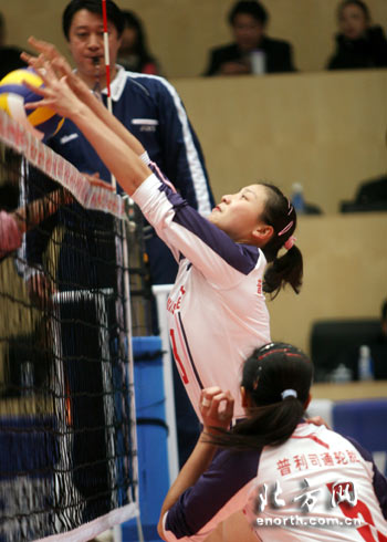 北方網消息(記者劉頌 攝影馬成):北京時間12月19日晚上7點30分,全國女排聯賽天津女排與天津南開允公女排的比賽在天津體育館進行,這是天津女排本賽季參加的首場全國女排聯賽。最終,天津女排以3:0的比分輕取同城對手,取得了新賽季的開門紅。