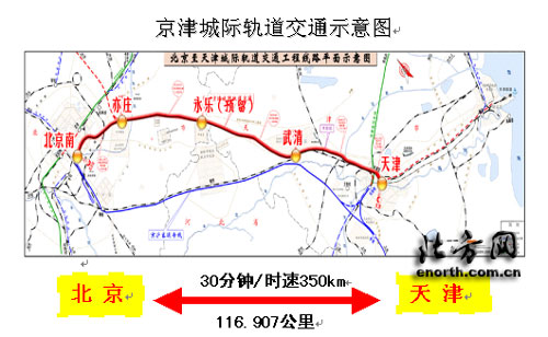 京津城際鐵路是連接北京與天津的全國第一條城際間高速鐵路。這條鐵路建成後,列車時速將達每小時350公裡,京津兩地可實現30分鍾直達,大大促進京津優勢互補,推動京津兩市加快發展。在建的天津站交通樞紐工程是京津城際鐵路的重要組成部分,是京津城際鐵路客運站主站房所在地。京津城際鐵路建成後,地鐵2、3號線和津濱輕軌將在這裡交匯,實現北京、天津、濱海新區、濱海國際機場的連通,市民不出站就可直接換乘,充分享受安全、便捷、通暢、環保的交通方式。