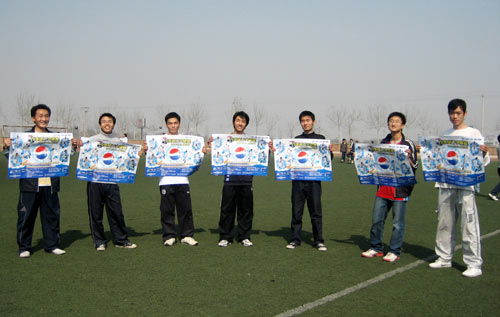 天津工業大學對本次比賽的宣傳可謂鋪天蓋地。該校的宣傳欄,食堂門口,宿捨附近到處可見本次比賽的海報。記者采訪了本校的兩位同學,均對此次比賽翹首以盼,他們表示百事舉辦的五人制足球賽既有競爭性又有娛樂性,在學生中應該廣泛普及,即使不踢球到現場為參賽同學加油或者參加游戲贏取獎品,為枯燥的學習生活帶來一些樂趣。