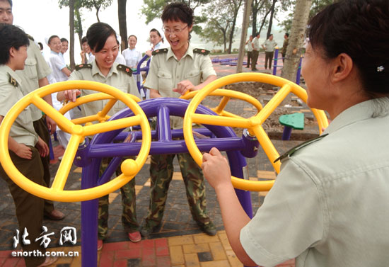 北方網消息(記者謝力強):7月31日下午,在中國人民解放軍『八一』建軍節到來之際,天津市體育局副局長劉樹華代表天津市體育局向中國人名解放軍北京軍區天津遼養院贈送了價值8萬元的體育器材,建起了『軍民健身園』,表達了全市體育戰線的同志對於子弟兵的節日問候和良好祝願。同時,天津市體育局還向其他解放軍駐津部隊捐贈了大批體育健身器械,標志著今年我市的『體育擁軍』活動全面展開。