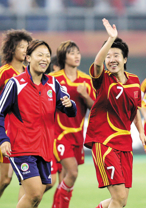 每場關鍵比賽的勝利總有會關鍵人物在關鍵時刻挺身而出,在中新之戰中,兩位老將聯袂扮演了這樣的關鍵角色。李潔在雙方僵持不下之際以一記精彩的頭球為中國隊敲開勝利之門,隨後老將謝彩霞將比分鎖定為2:0。