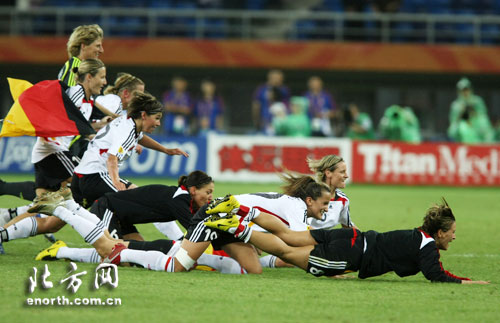 北方網消息(記者謝力強 攝影劉欣):北京時間9月26日20時,2007年女足世界杯首場半決賽在天津奧林匹克中心進行,由衛冕冠軍德國隊對陣淘汰中國隊晉級的挪威隊,結果德國隊戰勝挪威隊進入決賽。