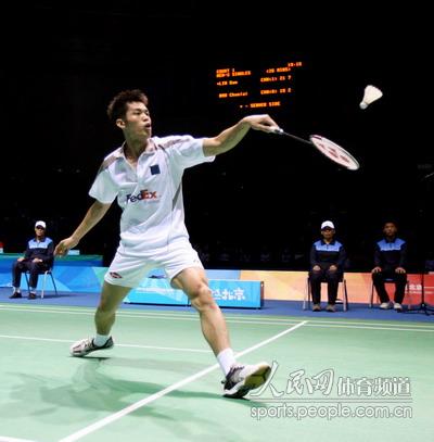 人民網北京10月14日電 記者徐岩冰攝影報道:『好運北京』2007年國際羽毛球邀請賽在北京工業大學體育館進入最後一天賽事,在男單決賽中,中國選手林丹以2比0戰勝隊友鮑春來奪得冠軍。在女單決賽中,中國選手謝杏芳以2比0戰勝隊友朱琳奪得冠軍。