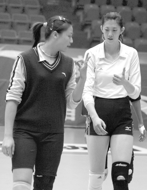 天津隊是昨天清晨6:30乘火車從上海返津的,抵達體工大隊宿捨已經7點多了。吃過早飯稍作休息,全隊就又到訓練館進行了技術訓練。薛明抵達時,隊員們剛剛吃過午飯准備午休,知道薛明來了,大家紛紛出來迎接。多年在國內各項賽事碰面,大家都是熟面孔,見了面一點頭、一個微笑,歡迎之意薛明就已心領。而李珊、李娟、魏秋月、楊亞男這幾個分別跟薛明同期在國家隊和國青隊效力的隊友更是問寒問暖,親熱得不得了。『行了,回頭你們再聊,先讓她吃飯。』如果不是常良纔這句話,薛明恐怕就要錯過開飯時間了。