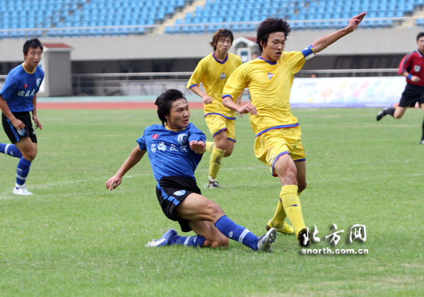 下半場剛開始第1分鍾,蘇州發起了猛烈的進攻,利用一個角球的機會將球送入球網,將比分扳為1:2。下半場第15分鍾,蘇州繼續進攻,球擊中松江隊後方橫梁,比分險些被蘇州再次改寫。而在激烈的下半場松江隊連琛也因吃到第二張黃牌被罰出場。此後蘇州再無更佳的機會。天津松江隊此戰過後也穩固了自己所在南方賽區的排名。