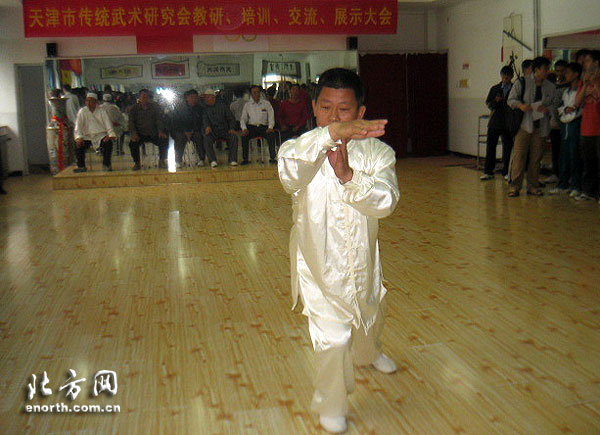 會上,來自天津市各界的武術學者均展示了各自的武術絕學,如吳氏太極、太極拳、形意拳、通臂拳、劍術、八卦刀、太鏟等。其中,特別有師出一代宗師郭長生高徒的弟子,身手敏捷,身輕如燕,雖已年近60高齡,卻將『郭燕子』式的拳法發揮得淋漓盡致,惟妙傳神。