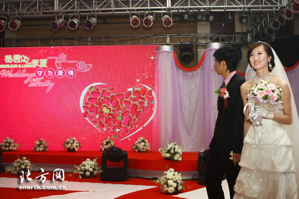 楊君的新娘名叫李夏,來自青島,是2001年青島首屆“啤酒女郎”,而楊君當時正在青島隊效力,兩人那時經朋友介紹而相知相戀,經過7年的戀愛長跑,終成眷屬。