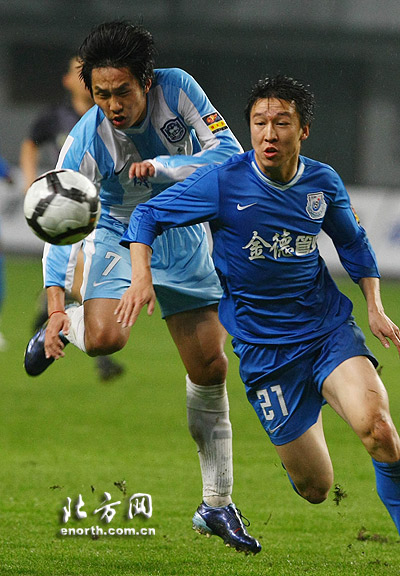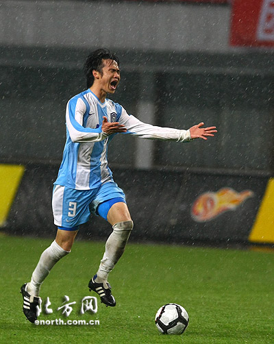 41分鐘,泰達贏得一粒角球,球被金德的防守隊員大腳開到前場。泰達上半場最好的一次進攻機會就這樣被浪費了。
