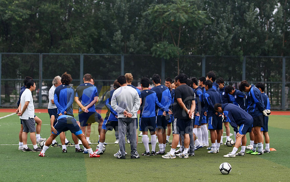 21日下午,泰達隊在天津體育學院進行了賽前訓練。由於津城連降大雨,“水滴”的草坪無法進行踩場訓練,因此,泰達隊將賽前訓練安排在了天津體育學院進行。(劉欣 攝)
