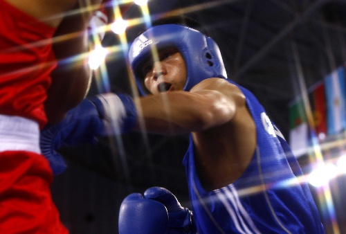 北京,2010年9月1日(武搏會)(2)拳擊——張建艇晉級男子75公斤級決賽9月1日,中國選手張建艇(右)在半決賽中。當日,2010年北京首屆世界武搏運動會拳擊男子75公斤級半決賽中,張建艇以3比2獲勝,晉級決賽。新華社記者丁旭攝(責任編輯:王燕芳)