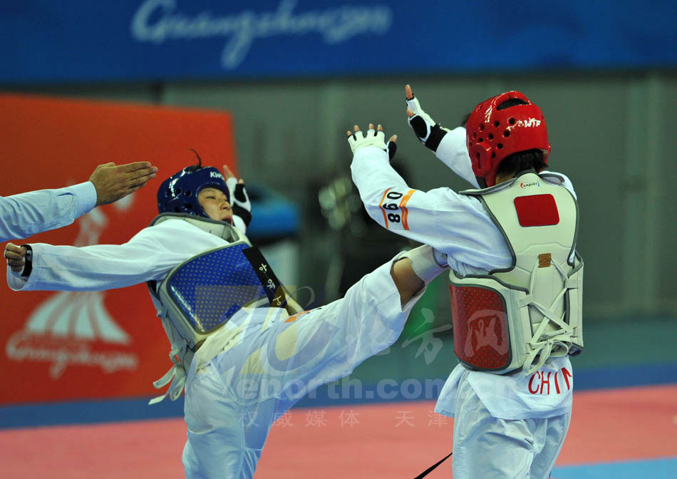 北京時間11月20日,2010年廣州亞運會跆拳道比賽進入了最後一日的爭奪,在女子73公斤以上級比賽中,中國選手劉蕊以4-3戰勝韓國選手吳貞娥,奪得冠軍,這也是中國隊在本屆亞運會上獲得的第四枚金牌。