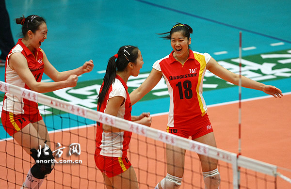 天津北方網訊:2010年12月26日,天津女排在人民體育館迎來了新賽季的首個主場比賽,此役她們面對的是八一女排,強強對話向來都火星四溢,尤其是在天津女排開局不錯的勢頭下,三連勝成為了她們不言而喻的目標。最終,天津女排以22-25、25-19、25-22和25-19,大比分3比1擊敗對手,取得新賽季三連勝。