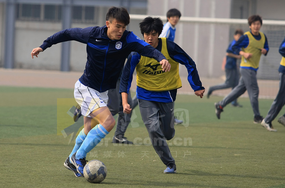 12日上午,天津泰達隊預備隊在天津工業大學體育場進行拍攝了2011版全家福以及每個球員的標準照。(攝影:劉欣)