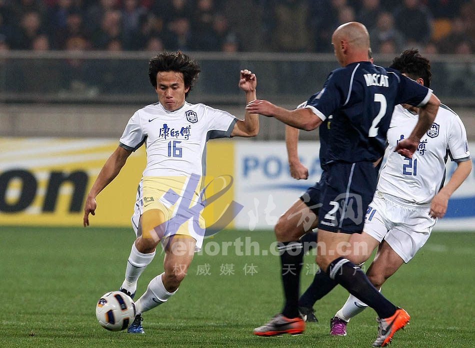 北京時間2011年4月5日19:30,亞冠聯賽小組賽天津泰達主場對陣墨爾本勝利,比賽進行到第18分鐘時,天津泰達隊長佐裏奇率先破門,泰達1-0領先(攝影 劉欣 馬宬)