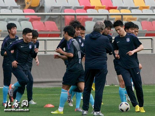 在簡單的準備活動結束以後,天津泰達主要還是以半場攻防演練爲主,全隊分成兩組,橙色背心一組由何楊、白磊、李瑋鋒、胡人天、張曉彬、于大寶、馬磊磊、陳濤和盧西亞諾組成,而另一組則包括聊博超、吳偉安、佐裏奇、曹陽、李本艦、範柏羣、毛彪權輯和奧迪塔。雖然是對陣積分落後於自己的成都謝菲聯隊,但是天津泰達衆將依然沒有表現出鬆懈的態勢,隊員們跑動積極,爭取機會表現自己。在場邊,本賽季開始前接受膝部手術的前鋒姜晨單獨慢跑,後來又做了一些恢復性訓練,爲了儘快恢復到最佳狀態爲泰達征戰。