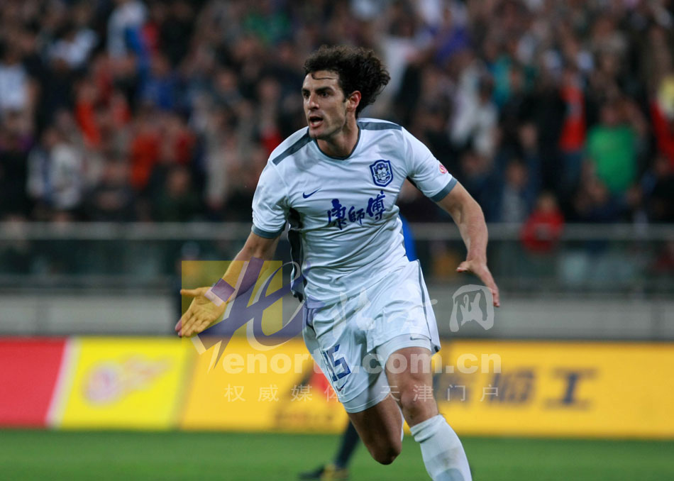 北京時間2011年5月7日19:30,2011賽季中超聯賽第6輪比賽,天津泰達主場迎戰陝西人和。37分鐘,曲波點球破門,45分鐘吳偉安接到于大寶腳後跟傳球將球打進。73分鐘,盧西亞諾頭球攻門,4分鐘後久比奇接到趙旭日的傳球將比分扳平,最終經過90分鐘的鏖戰,戰成2:2(攝影劉欣)。