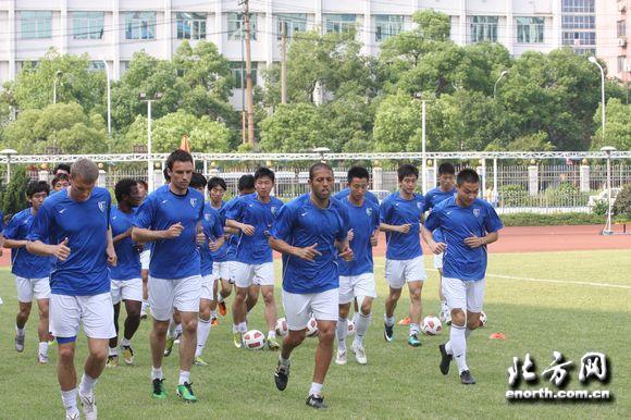 天津北方網訊:北京時間5月7日,在足協盃首輪淘汰江蘇舜天隊後,天津松江隊於6日移師湖南長沙,並於7日下午在位於長沙市區的湖南省人民體育場進行了中甲聯賽第8輪客場同湖南湘濤隊比賽的賽前適應場地訓練。