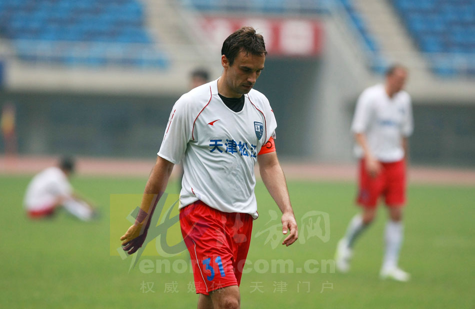 6月11日下午,天津松江隊主場0比0戰平廣東日之泉隊。下半場比賽突降大雨和冰雹,比賽被迫一度中斷。(攝影劉欣)