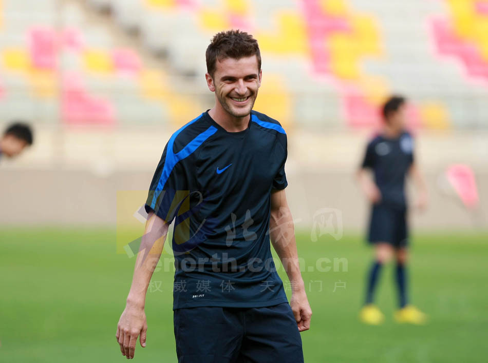 13日下午,泰達隊在泰達足球場進行了賽前踩場訓練。新外援比拉斯科亮相,隊長李瑋鋒在遭到停賽後並未休假,而是和隊友一起訓練。李瑋鋒表示自己對紅牌表示後悔並道歉,同時交出隊長袖標(攝影劉欣)
