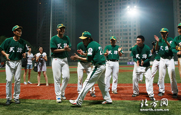 天津北方網訊:23日晚,2011全國棒球聯賽總決賽在天津體工大隊棒球場決出總冠軍。最終,在總決賽第四回合的比賽中,天津雄獅隊以10:3擊敗廣東獵豹隊,以總比分3:1戰勝對手奪得冠軍。