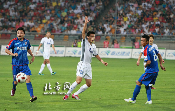 13分鐘,泰達反擊,打到了申花禁區外右側,王新欣假射真扣,但被斷了。18分鐘,泰達後場斷球,于大寶帶球銜枚疾走,分給盧西亞諾的球質量不好。22分鐘,于大寶在後場接到隊友傳球后申花的熊飛直接將其撞倒,當值主場馬寧對其出示黃牌,這是本場比賽第一張黃牌。26分鐘,李瑋鋒助攻到前場,他在禁區先附近將球傳到後點,可惜球落在了申花隊員腳下,本場比賽“大頭”顯得很興奮。