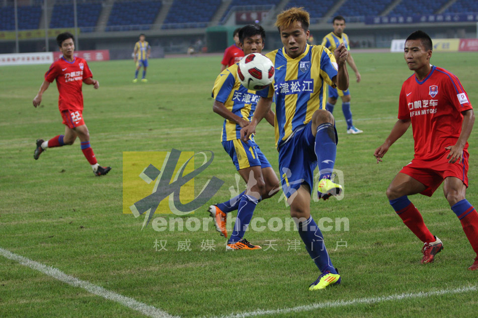 北京時間8月21日19:45,中甲聯賽展開第20輪爭奪,天津松江隊坐鎮主場迎戰重慶力帆隊的挑戰。最終,經過90分鐘激烈交戰,雙方戰成2:2平局(攝影:辛華水)……