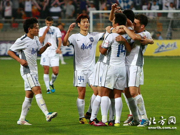 主場2比0狙擊“西北狼”陝西人和隊,天津泰達隊昨晚不僅本賽季首勝對手,亦歷史性晉級足協盃賽四強。是役,沉寂許久的老將王新欣一腳世界波打破僵局,貢獻一傳一射的小將胡人天更如神兵天降。
