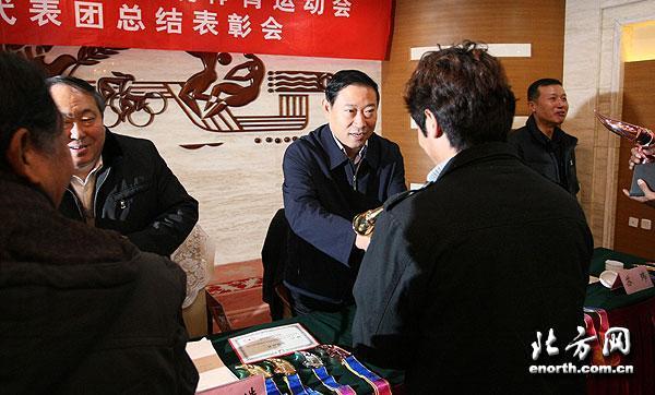 天津北方網訊:12月29日上午,第九屆全國少數民族傳統體育運動會天津市代表團總結表彰會在天津大館接見廳舉行,天津市民委和天津市體育局對在第九屆全國少數民族運動會中取得優異成績的教練員、運動員進行了表彰。