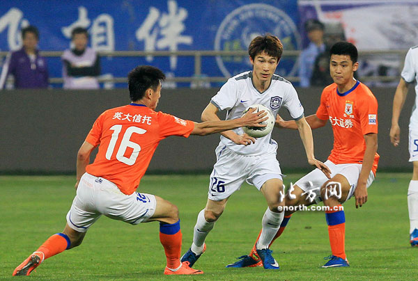 天津北方網訊:北京時間2012年5月11日晚,天津泰達隊坐鎮主場天津泰達足球場迎戰近來與自己境遇相同的山東魯能泰山隊。此役之前天津隊在各項賽事中遭遇三連敗,全隊上下承受着來自各個方面的巨大壓力。特別是主教練庫澤,急需一場勝利來穩固自己“風雨飄搖”的帥位。最終泰達隊在困難面前衆志成城,在隊長王新欣的驚豔表現的帶動下,憑藉前鋒阿爾斯本賽季的第6粒聯賽入球和後腰蘇薩卡的“錦上添花”,在主場以2:0戰勝山東魯能隊。