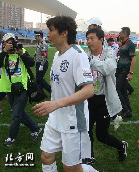 “你們這樣判罰對得起自己的良心嗎?中國足球就是被你這種裁判毀了!”李瑋鋒賽後罕見的暴怒直指本場比賽的三名裁判,而泰達隊的很多隊員也用自己的方式表達着不滿。