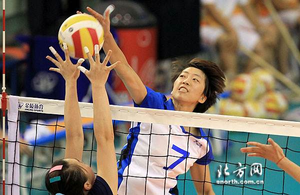 天津北方網訊:9月14日下午,大運會女排1/4決賽在南開大學體育館進行。結果天津女排以3比0輕鬆戰勝浙江隊,順利進入四強。15日,她們將與江蘇隊爭奪決賽權。