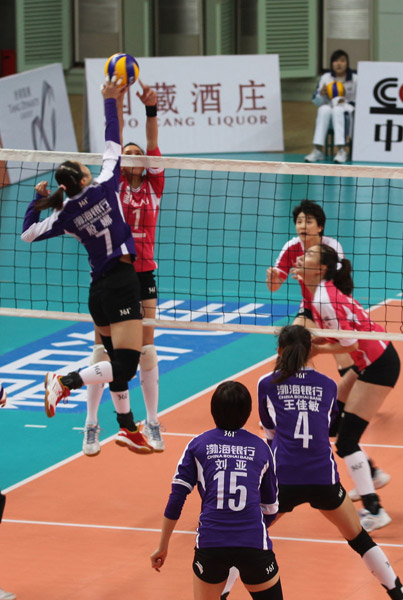 天津北方網訊:2012年12月1日,2012-2013賽季全國女排聯賽繼續展開第七輪激烈爭奪,在B組第一階段小組賽的一場關鍵對決中,天津渤海銀行女排客場挑戰勁敵上海女排。最終,天津女排總比分3:1客場取得勝利。四局比賽比分分別爲(天津女排在先):24:26、25:21、25:16、25:16。
