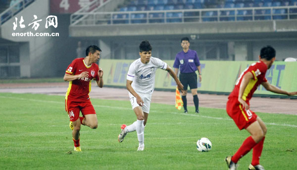北京時間2013年6月22日19:35,2013賽季中超賽季第13輪,天津泰達主場迎戰長春亞泰。圖爲精彩瞬間。