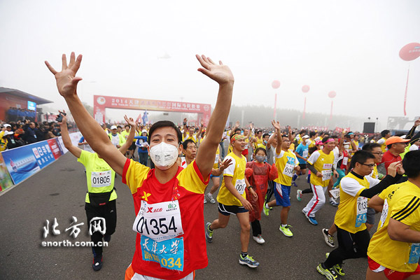 天津北方網訊:10月25日上午8:30,2014天津武清開發區杯國際馬拉松賽在天津市武清區行政中心前正式鳴槍起跑,來自12個國家和地區的1萬餘名運動員同場競技。經過兩個餘小時的激烈角逐,來自埃塞俄比亞的SLEMAN DESE ENDRIS率先衝過終點,取得男子全程冠軍,而天津姑娘王曉姝則成功衛冕女子組冠軍。
