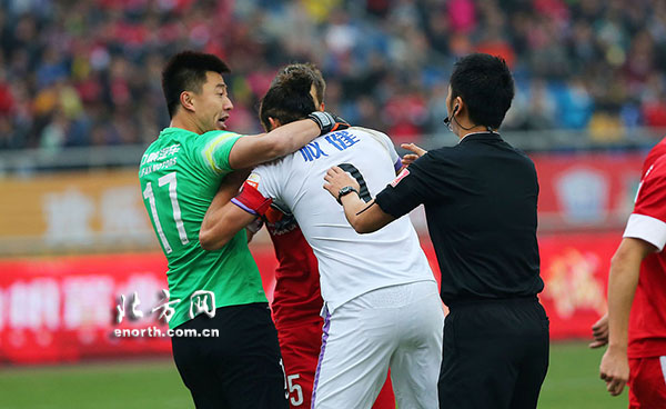 北京時間2015年10月31日15:00,2015賽季中超聯賽30輪,天津泰達客場挑戰重慶力帆。圖爲比賽精彩瞬間。