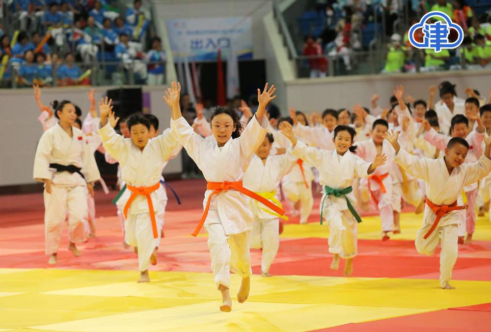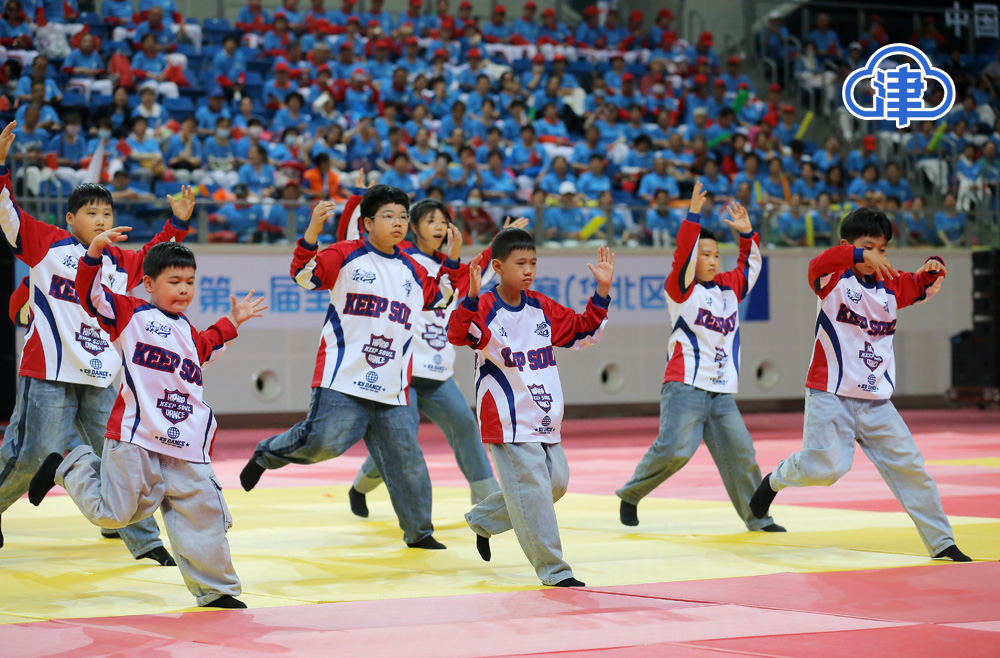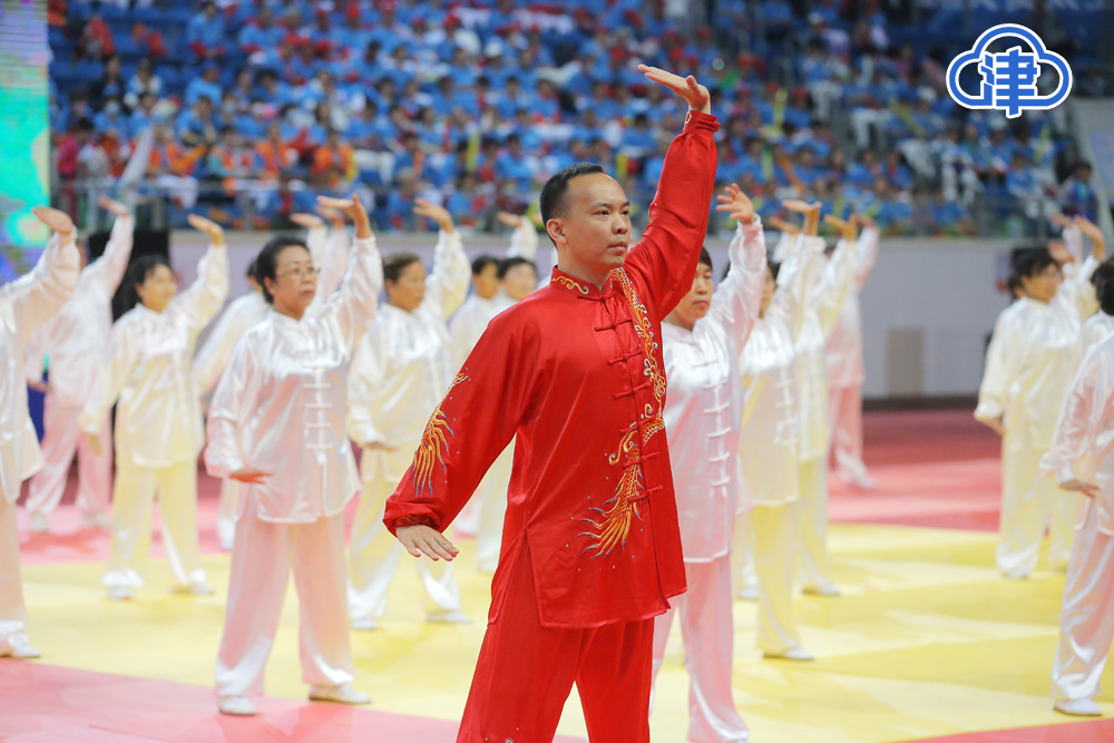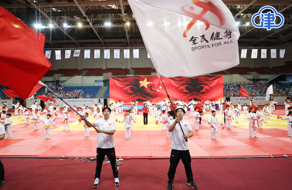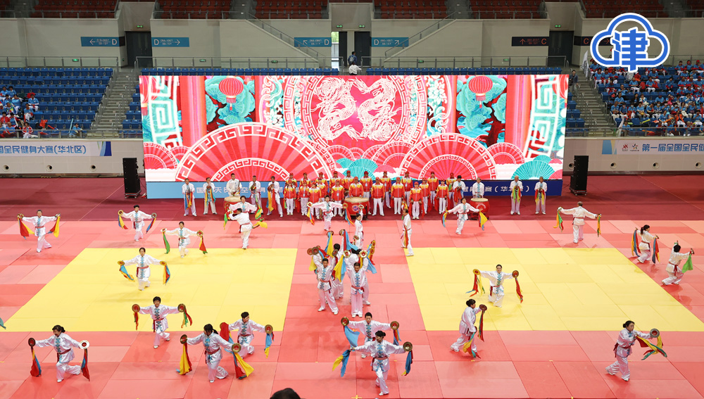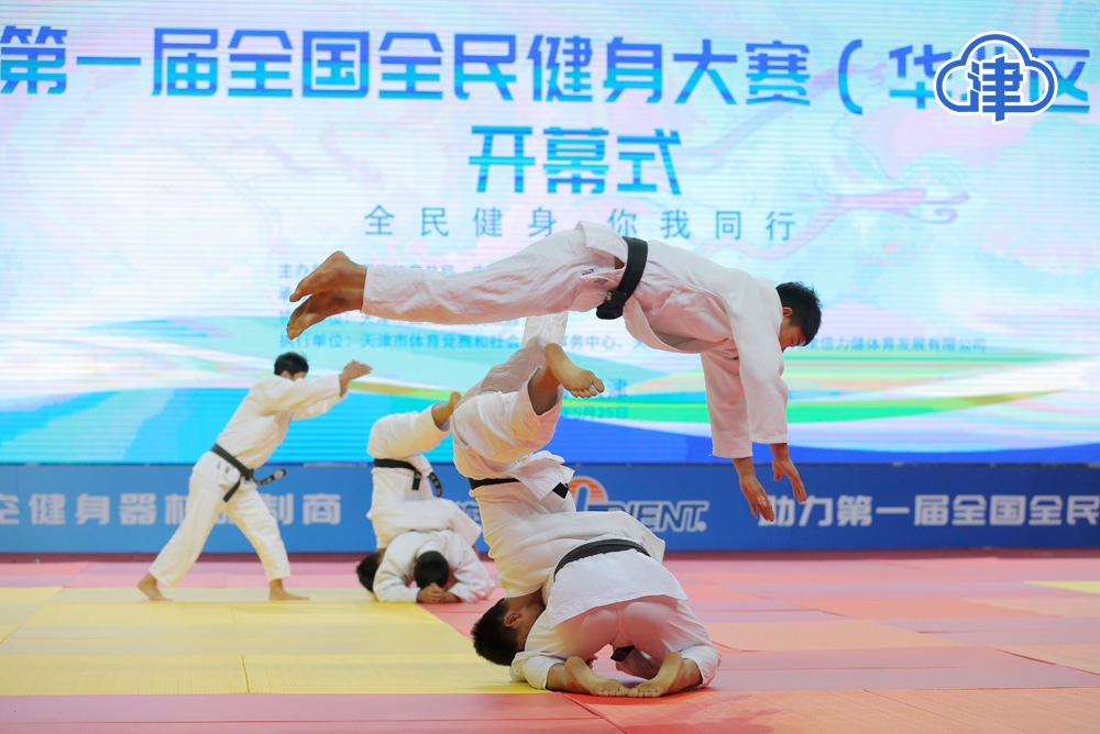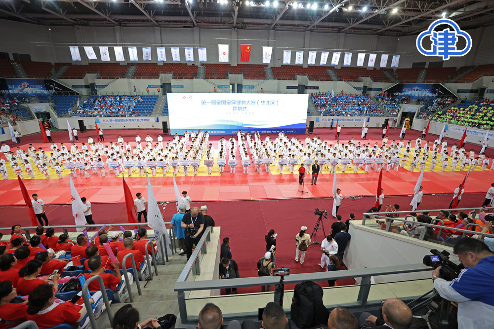 當天開幕式“簡約、安全、精彩”,充分展示全民健身成果和全民健身工作特色、亮點為主線,開場表演《盛世歡騰 健康中國》舞龍舞獅、飛?、武術的精彩融合,展現天津傳統非遺文化;《津舞少年》重點展示天津市青少年活力四射的風采;《我們都是追夢人》、《百人齊心 匯聚八方》突顯社會體育指導員及健身氣功八段錦養生魅力 ;《少年當自強》以柔道少年表演彰顯青少年體育碩果;結束部分以佟文、魏秋月、汪皜、於萌萌、董潔等奧運冠軍、全國冠軍領唱《紅旗飄飄》,全場互動,將開幕式引向高潮。來自濱海新區,寶坻區、天津市社會體育指導員協會、天津市柔道協會及我市青少年等共有800多人參與展演任務。開幕式當天,在西青區、武清區、南開區舉辦了第一屆全國全民健身大賽(華北區)柔道、毽球、象棋比賽。