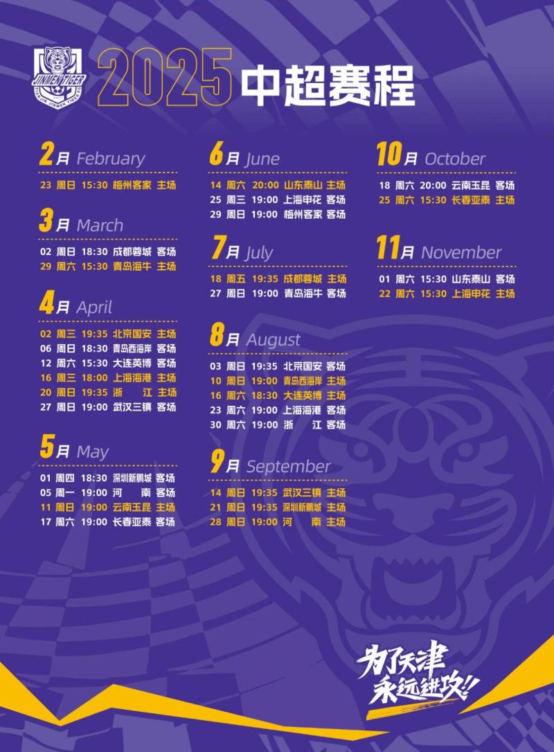 2月23日,全新陣容的津門虎隊將在泰達足球場主場迎戰梅州客家隊,正式開啟新賽季的征程。