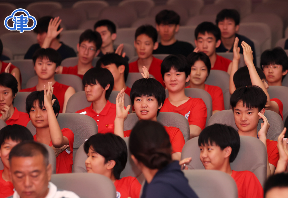 天津男排隊長毛天一、天津青年女排主教練劉仁德、天津市體校排球項目運動員牛思迪了代表教練員、運動員進行了學習弘揚踐行女排精神交流發言。
